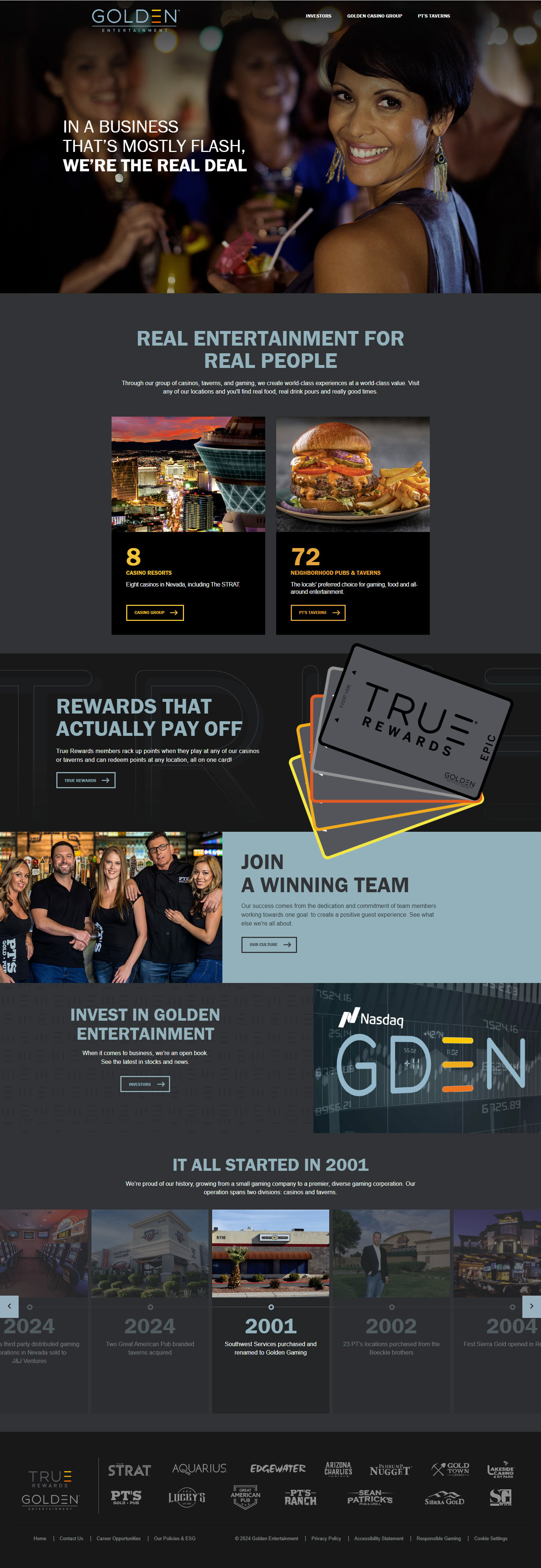 Publically traded (GDEN NASDAQ) with 2023 revenues exceeding $1 billion, Golden Entertainment owns 72 pubs and 8 casino resorts across Nevada. We designed and maintain many of the company's websites, including the iconic Las Vegas hotel & casino The Strat.